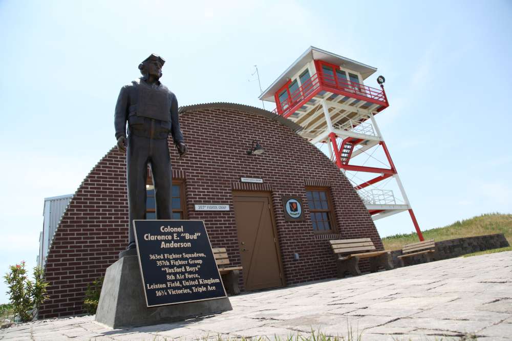 The 357th Fighter Group of the Army Air Corp’s 8th Air Force is represented by the museum’s Quonset hut and control tower. Authentic artifacts are used throughout the briefing room depicting Leiston Airfield in England as well as authentic communications equipment in the control tower. A bronze of legendary Col. Clarence E. "Bud" Anderson, a triple ace fighter pilot completes the scene.
