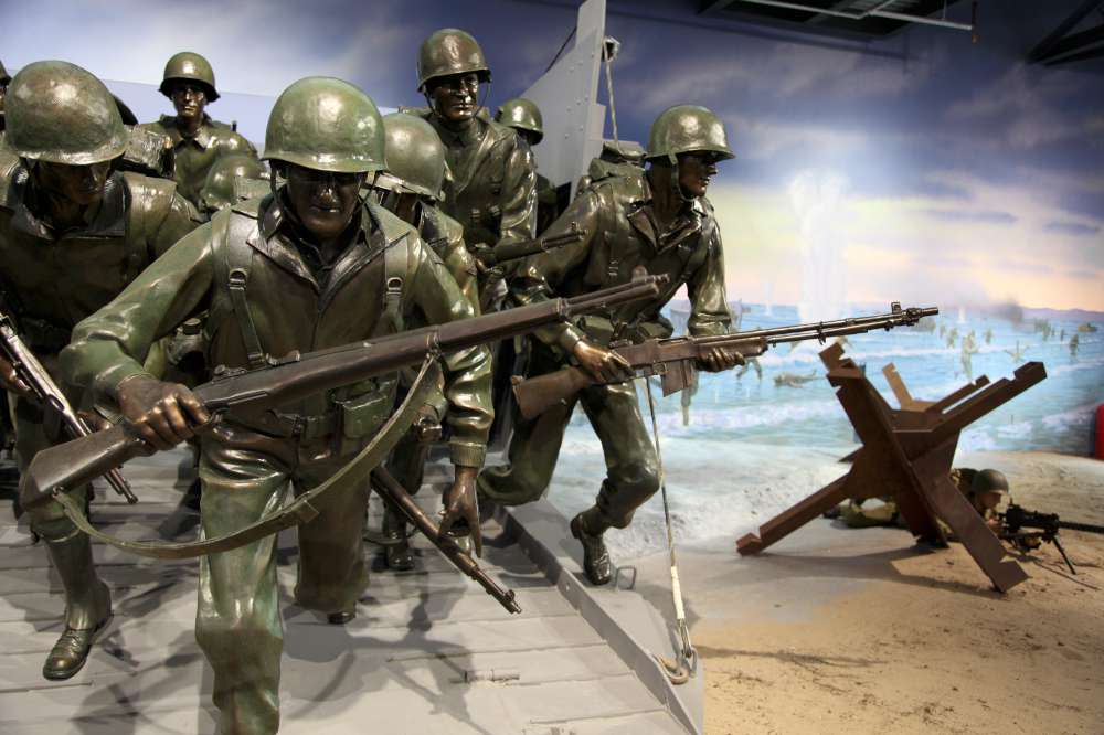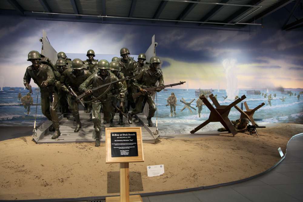 Enter the museum and be transported in time to the 1940’s era for a WWII experience. The museum is home to the pristine collection of fully operational and active WWII trainer, fighter and bomber aircraft restored and owned by Fagen Fighters. The collection includes two P-51D Mustangs, a Lockheed P-38, a P-40, a F6F Hellcat, FM-2 Wildcat, B-25 Mitchell bomber, a Stearman, a BT-13, a PT-19, a PT-22, and a PT-26. Fully operational authentic WWII ground vehicles are proudly displayed among the aircraft. The very rare WACO CG-4A glider used to silently transport troops during WWII is among the displays. A mural by acclaimed artist Dave Reiser depicting Utah Beach during the D-Day Allied Invasion of Normandy, France, plays a prominent role in the museum. Bronze sculptures of the Army’s 4th Infantry’s soldiers are prepared for combat as they land in a Higgins’ boat bringing the Ivy Division’s motto "Steadfast and Loyal" to life. An actual boxcar of WWII from Germany is the main feature of the Holocaust exhibit in the Bomber Hangar.