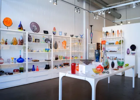 Experience local glass arts through our onsite Glass Marketplace and Exhibition Gallery! Our Marketplace stock rotates seasonally, offering a multitude of expertly and locally crafted created glass gifts, decor, jewelry, sculptures, and more! Our Exhibition Gallery is a venue for contemporary glass art intended for themed, solo, or group exhibitions. Exhibits are free to view and are open during our Gallery Hours.