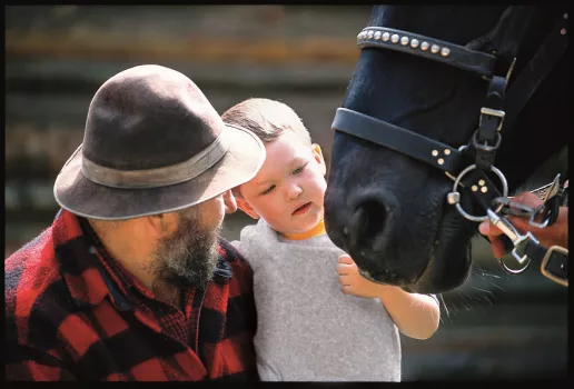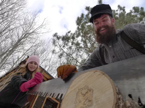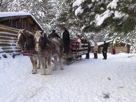 Take a guided tour of the recreated logging camp where story themes change often. Meet the blacksmith, saw filer, bull cook, clerk and lumberjacks. See draft horses demonstrate feats of strength during cross-hauling and jammer shows as lumberjacks load logs onto sleighs. After the tour, take a short walk to the moored river "wanigan," a floating cook shack and bunkhouse used by river drivers when moving logs downriver to the mills. During the summer, 60 minute guided tours are offered daily.
