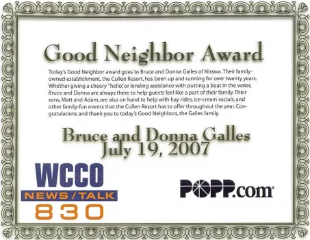 Twelve clean, Smoke-Free cabins (one wheelchair accessible with tub) ranging from deluxe beachfront to economical, cozy 2-bedroom cabins. Smoking is permitted outside of cabin. Some units feature wood-burning fireplaces and all are air conditioned. Soft water, microwave, coffee maker, Cable TV, "cabin-side" parking. Cabins include a picnic table, campfire ring and a barbecue grill. Join in activities, enjoy the cry of a loon, a golden sunset or just relax and reserve the special quiet times just for yourself. Game room, laundry, concrete boat ramp. Boat, motor, kayak, canoe, pontoon rental. Roped safe and sandy swimming beach. Galles' Upper Cullen Resort can provide your family with a Vacation to Remember!