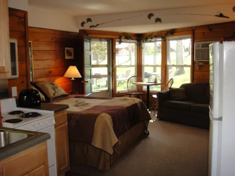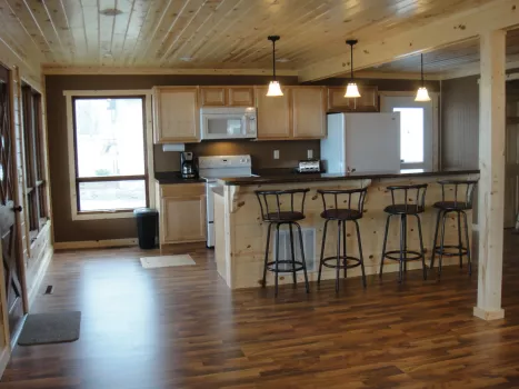 Sugarbush Lodge is our largest cabin boasting 8 bedrooms, 5 bathrooms, 2 kitchens, and a private game room with pool table, ping pong, and foosball! At just under 6,000 square feet, the Sugarbush makes a perfect year-round destination for families, businesses, and friends! We have 16 additional cabins open May through August ranging in size from Lakeside Studios (sleeps 2-4) to our 4 bedroom Pineview Cottage (sleeps up to 14). Whichever cabin selected for your stay you will appreciate the fully equipped kitchen, Weber gas grill and picnic table for outdoor meals, A/C, free wifi, extended cable, and clean accommodations.