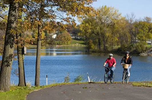 The Glacial Lakes State Trail is located on a former Burlington Northern Railroad grade, and is generally level and wheelchair accessible. The trail is paved with asphalt for 22 miles between Willmar, Spicer, New London, Hawick, and the Kandiyohi/Stearns County line. An additional 5 miles from Richmond to Roscoe in Stearns County is also paved. The segment from Willmar to New London has 10 miles of parallel, grass treadway for horseback riding, while the New London to the Kandiyohi/Stearns County line segment has grass shoulders to accommodate this activity.