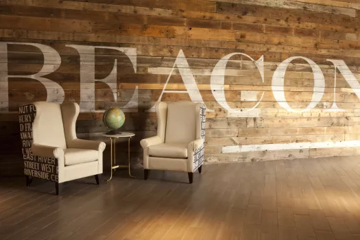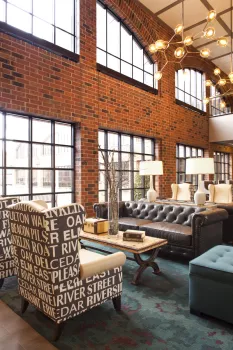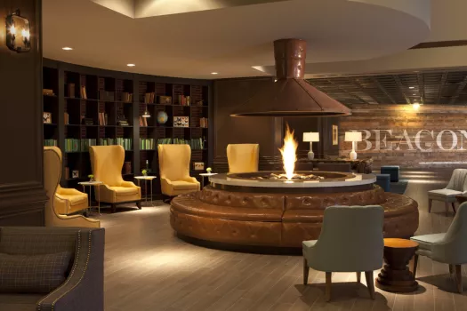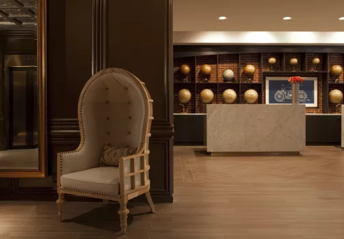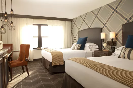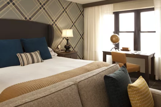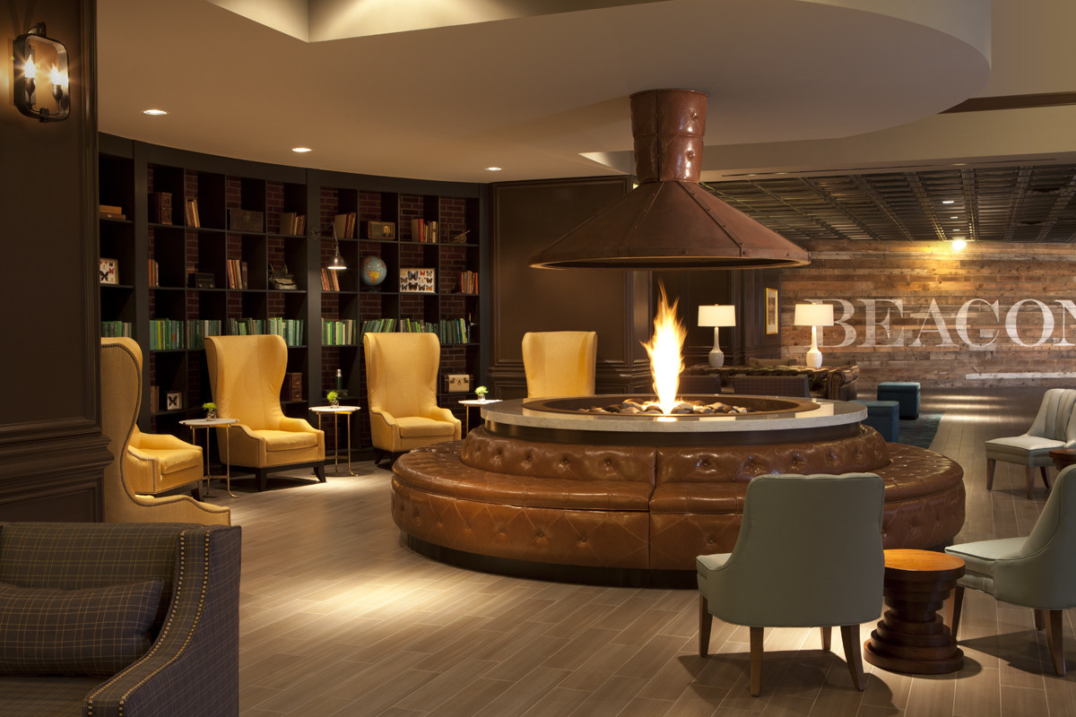Graduate Minneapolis is home team central for golden get-togethers, located less than a block from Gopher’s stadium, next door to dorms and McNamara Alumni Center. Its lush lake house landscape is dotted in forest green, woodland toile, and Prince-ly details of custom plum paisley and a little Corvette red to bring you home. From meetings in town to campus meet ups, the lobby is lounge-central for student hang time or some serious air hockey tournaments. Roving food carts serving local flavor (‘sota stuffed burritos, hand crafted hot cocoas and all-star spirits) drift amid the cozy communal tables, walk-up fireplace and woodsy backdrop.