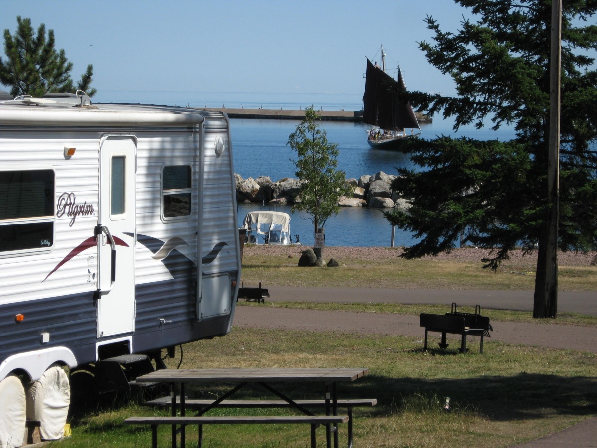 The Grand Marais campground, RV park and marina on Lake Superior. 300 campsites with a full spectrum of prices and settings. Each campsite includes a picnic table and fire box. The marina features 30 slips, mooring buoys in the harbor and fuel and pump-out on the service dock. Also at our Lake Superior location: 4 clean, modern bath houses, Rec. Hall, Picnic Pavilion, ball field, Sweethearts Bluff Nature Area, RV dump station, 2 public water access ramps, playground with horseshoes, basketball and over a mile of shoreline. Wi-Fi, wood, ice and supplies at the office.