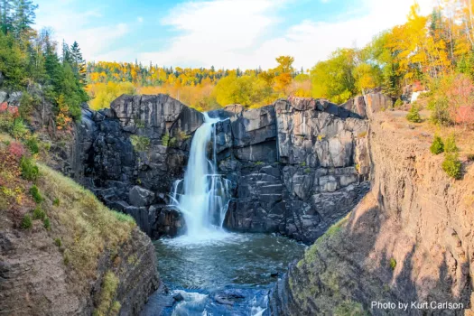 Grand Portage State Park has beautiful and accessible views, like the highest waterfall in the state. It is an easy one-half mile, wheelchair-accessible paved trail to High Falls. There is also a rugged 3.5-mile hiking trail to Middle Falls, with spectacular ridgetop views of Lake Superior and Canada. The spectacular scenery sets the stage for hiking, photography, picnicking, and more. This park is day-use only and does not offer overnight camping.