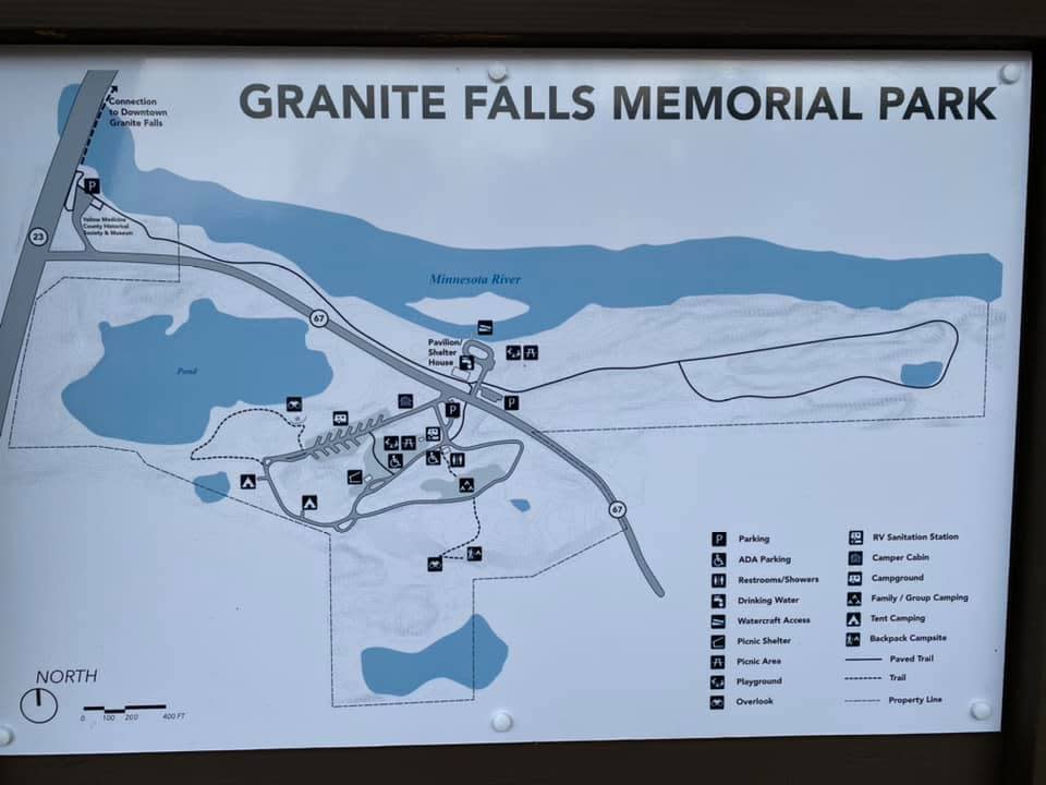 Memorial Park in Granite Falls offers camping spots for recreational vehicles, tents, and car campers alike. With access to electrical hookups, water, and showers, our campground has all the amenities for a comfortable stay. Surrounded by lush forest, granite outcroppings, and in close proximity to the Minnesota River, Memorial Park provides explorable beauty unique to Southwest Minnesota.