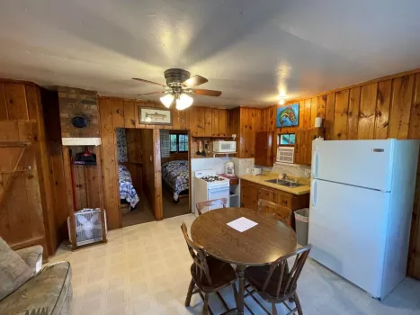 Green Valley Resort features rustic-looking cabins with modern conveniences such as wifi and air-conditioning. Also has spectacular lake views. Every cabin comes with a deck, charcoal grill, fire pit, and picnic table.