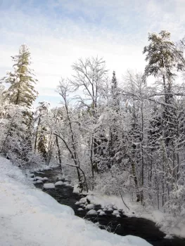 The Gunflint Trail provides access to remote lakes and woods. By day the sights, sounds, & scents of the forest create peace and tranquility that soothe the soul. In the evening, hear the distant cry of a wolf, the hoot of an owl, or the whispering breeze in the pines. Glance to the sky and find spectacular displays of northern lights, the Milky Way, and shimmering moonlight.The Gunflint Trail is an area for all seasons. Fall offers striking colors and prime hiking. Winter is full of cross-country skiing, snowshoeing, snowmobiling, and sleigh rides. Spring brings wildflowers, great fishing, and singing birds, and summer is a vacationer's paradise.