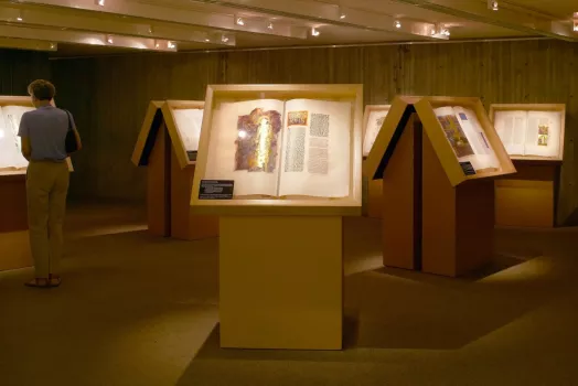 Home of The Saint John's Bible, Archive of over 100,000 medieval manuscripts on microfilm and digital images. Original folios from The Saint Johns Bible are on display in Alcuin Library. Rare books and ancient manuscripts are on display in the HMML Reading Room. Self-guided and other tour reservations available by calling Tim Ternes at 320-363-3351 or by e-mail at [email protected]. Email: [email protected]; Websites: www.hmml.org or www.saintjohnsbible.org