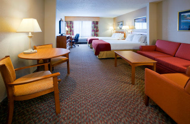 Only AAA 3-diamond hotel in Worthington. Hotel features free hot Express Start breakfast bar, free wireless Internet, indoor pool, whirlpool, fitness room, business center, guest laundry, and is 100% nonsmoking. Choose from guest rooms with one king or two queen beds. All rooms have well lit work desk with ergonomic chair, flat panel TV, coffeemaker, hairdryer, and iron/board. Studio suites also include a sofa bed or sofa loveseat and kitchenette. Meeting room for up to 45 onsite.