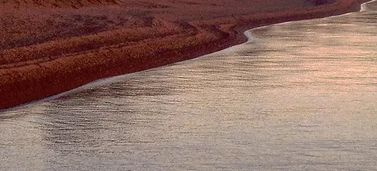 Iona's Beach curves in a salmon-colored crescent for over 300 yards along Superior's North Shore. It is bound to the north by a roughly 30' high cliff of pink rhyolite and felsite bedrock—source for the stones that make up the beach—and on the south by a headland of grey basalt.