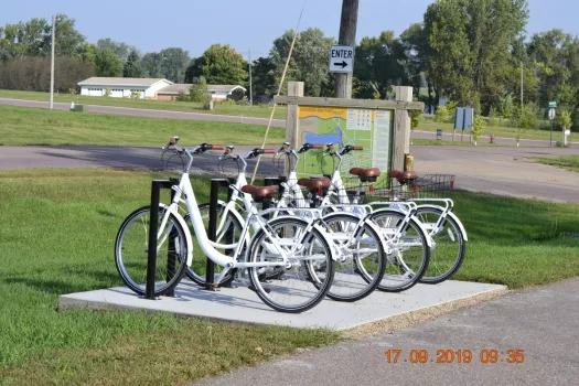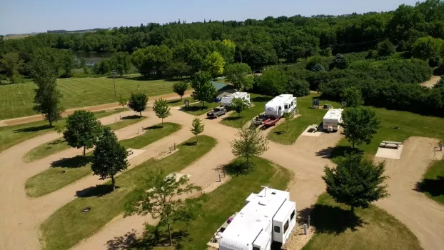 Located at the the corner of Prince Street and Golf Course Road. 18 RV/trailer sites, pull-through sites with electricity/water/sewer, fire rings, and picnic tables. Six-mile biking/hiking trail, rental bikes onsite, city park with playground equipment, picnic shelter, disc golf, golf course, lake access, and fishing pier nearby. Bathroom and shower facilities on site. Pets must be on leash. Cash or check only, no credit cards. Open May 1 to October 1. Directions: From Minnesota Highway 60, turn north (by Casey's) on County Road 27, across railroad tracks, and turn slightly left to follow Golf Course Road towards the lake, watch for signs. Campground is on the east side of Golf Course Road.