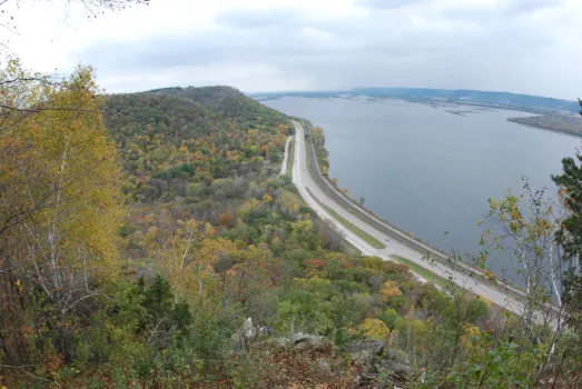 This trail in southeastern Minnesota climbs to the top of a steep, wooded ridge where two overlooks…
