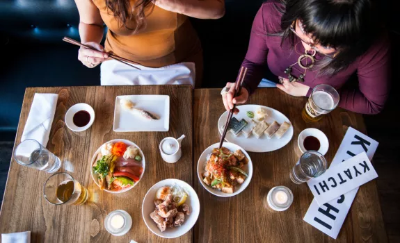 Kyatchi is committed to fun times, happy service, healthy oceans and perennial landscapes. Inspired by Japanese cuisine, we’re plating up sustainable ingredients – especially with a focus on sustainable fish and seafood – in both traditional Japanese and new American ways. All of our seafood is selected based on the Monterey Bay Seafood Watch guidelines. Our menu includes ramen, traditional Donburi rice and vegetable bowls, an assortment of small plates and a Japanese spin on hot dogs. (Because we like baseball too!) Named best seafood, best sushi and best hot dog by Star Tribune and Mpls St. Paul Magazine. We’re also on a mission to pour you a great sake. Irsashai! Mpls hours: M-F 4pm-12am, Sat-Sun 11am-12am.