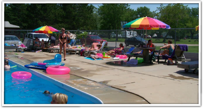 All sites on grass. All full hookups have cable tv available, We have a heated pool, full service store, recreation hall, laundry, bathrooms, and showers. There is a marina next door and a golf course one mile away. Have some sun fun with our new sand volleyball court. Community room had kitchen facilities available for special parties.