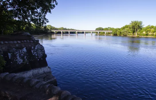 lodging facility. The nine acres of lawn and gardens overlooking the Mississippi River consist of majestic oaks, basswoods (also known