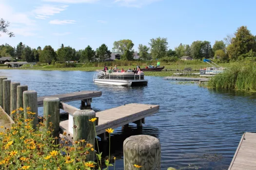 Seasonal campground. Campsites and RV hook-ups on a protected harbor that opens into Girl Lake and…