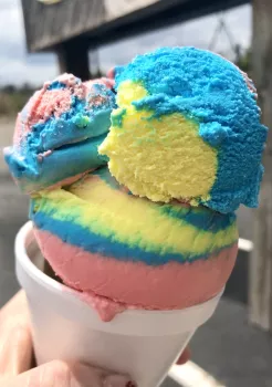 We serve smoked fish, smoked shrimp, hard scooped ice cream, and a large variety of cheeses!