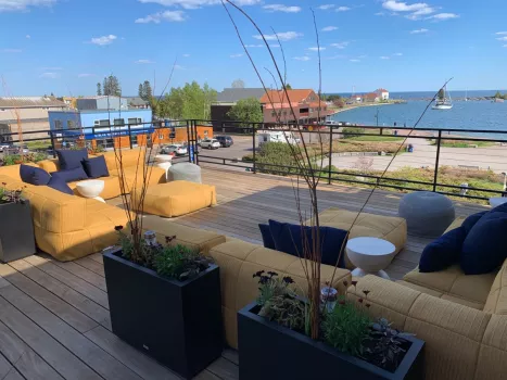 The Mayhew Inn is located in the heart of downtown Grand Marais. The views of the harbor and bluffs along The Gunflint Trail are incomparable and are visible from the expansive rooftop decks. The Mayhew Inn is the perfect homebase for enjoying the restaurants and shops in downtown Grand Marais and are all within walking distance. Enjoy day trips to Lutsen Mountain, National Parks for hiking or cross-country skiing, or up The Gunflint Trail. All are a short drive from The Mayhew Inn.