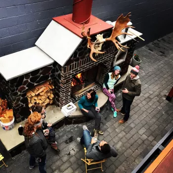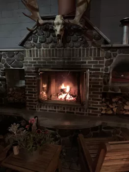 The 6 individual units that make up The Mayhew Inn are uniquely designed and built to be modular. Add to that common spaces that can be shared with larger groups or experienced alone. The Lobby has a cozy fireplace, comfy seating for lounging, and a non-production bar with an icemaker for guests to enjoy. Entertainment opportunities in The Lobby include games for all ages, a turntable with vinyl from the 60’s, 70’s, 80’s and beyond as well as a large screen TV. The "Dragon Lounge" faces a majestic outdoor fireplace with a brick pizza oven. This cozy lounge is the perfect place for happy hour or a memorable nightcap.