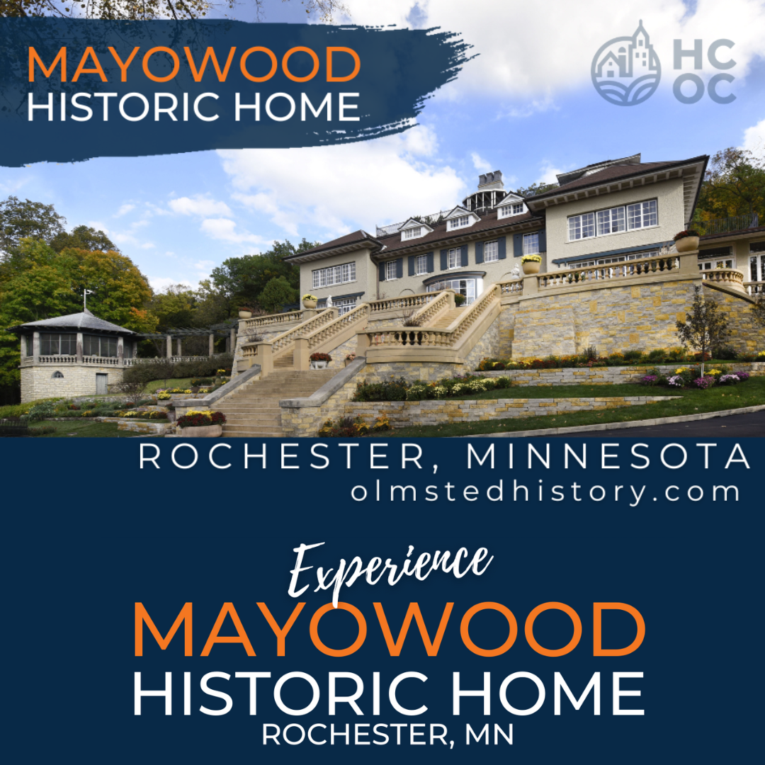 Please visit our website for more information at olmstedhistory.com/mayowood as tour dates and times vary throughout the year. Online ticketing at olmstedhistory.com/mayowood