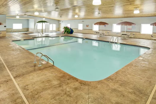 Clean and affordable! Spacious rooms with microwave, refrigerator, coffeemaker, hairdryer and iron in each room. Some rooms with step-in showers. Free Hi-Speed wireless internet in all rooms and public areas. Large indoor pool and whirlpool with a arcade room adjoining. Walking and bike path along Cascade Creek.