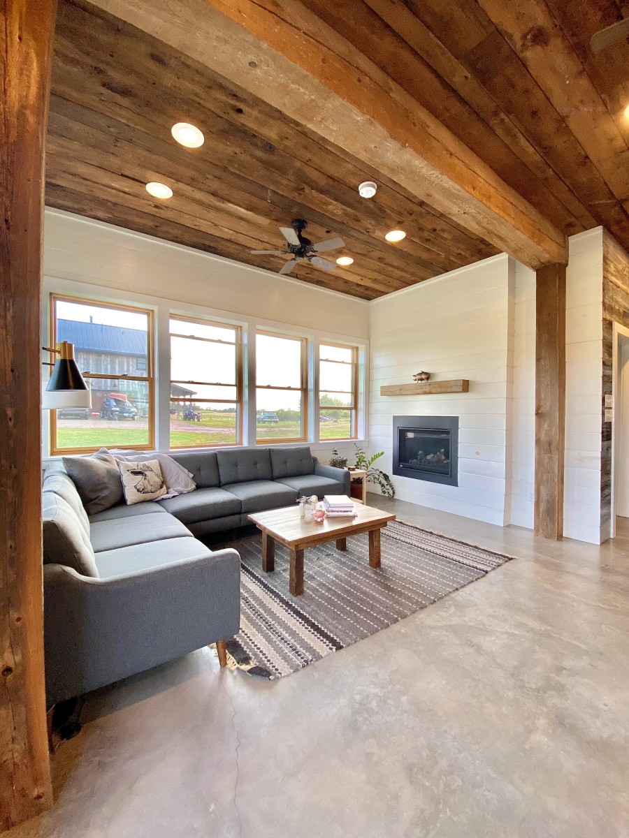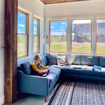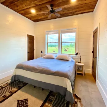 The Timber Frame Barn features two bedrooms, one bathroom, a full kitchen and living room, and personal patio. It is particularly suited for those who would like to escape the city and experience a beautiful natural setting, but prefer full amenities. Salvaged and reassembled from two historic Midwestern barns by farm owner Jason, he has magically kept the soul of these structures intact with exposed posts and beams and clapboard walls, while offering guests modern comforts and clean design.