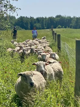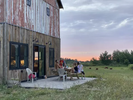 Experience a “farm stay” getaway at a regenerative family farm. Medicine Creek Farm is a beautiful expanse of gentle hills and low-lying wetlands on the edge of Minnesota's northwoods. Here, our farm animals live outside in their natural habitat alongside thriving wildlife like coyotes and wolves. Our rotational grazing system aims to improve the soil, water, and air through a cycle of conscious impact, rest, and regrowth that mimics our earth's natural cycles. We hope your visit will inspire your own rest and regrowth through connection with the natural world.