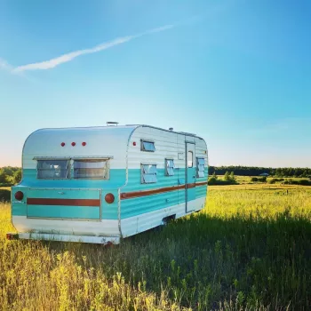 For a glamping experience, the Vintage Remodeled Camper Trailer sits along a ridge overlooking our regeneratively-grazed pastures. Take in the peaceful sight of grazing cows and sheep while sipping your morning coffee, and kick back at a campfire under the milky way just steps from a cozy place to lay your head. The camper trailer features original vintage fixtures alongside reclaimed hardwood floors and rustic woodwork.