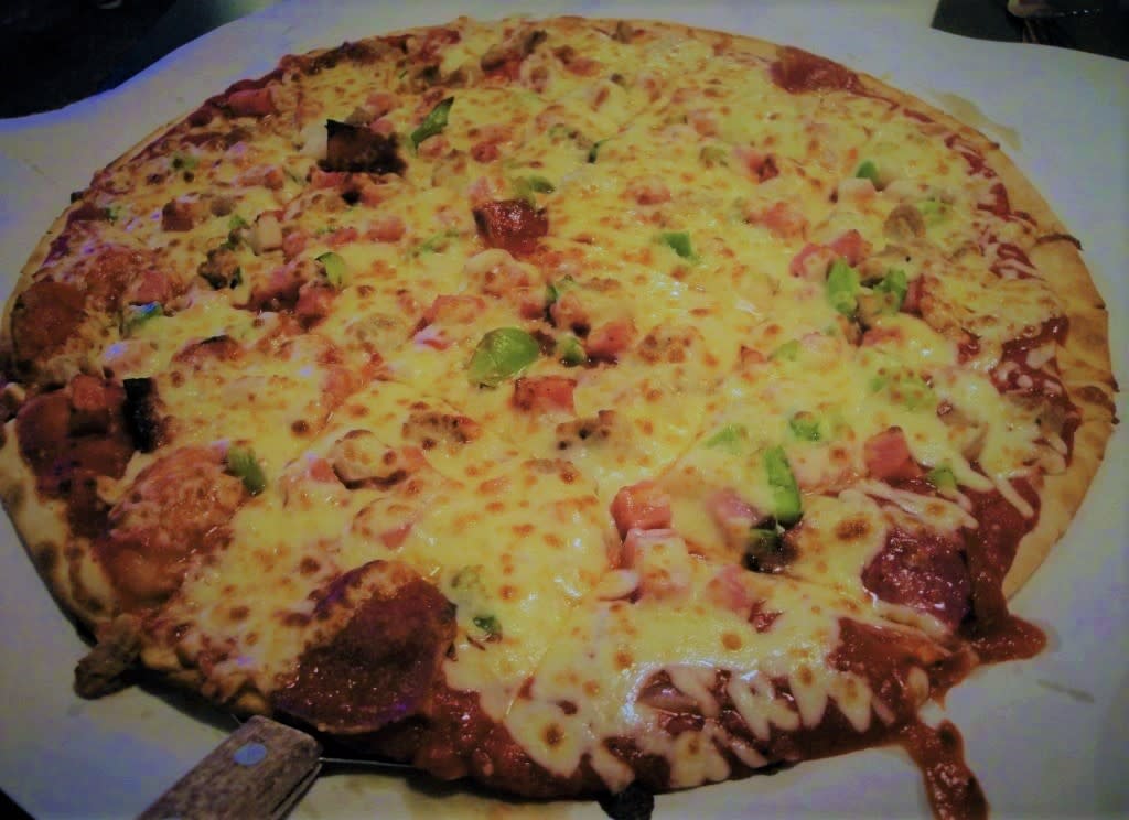 Specializing in thin crust New York-style pan pizza, the menu also includes ribs, chicken, shrimp, sandwiches and ice cream.
