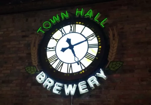 The Town Hall makes some of the best beer in America and provides an atmosphere where its patrons can relax and enjoy them. Please come and taste our award winning beer and fantastic food. Food and beverages are served in our bar, dining room and lounge.