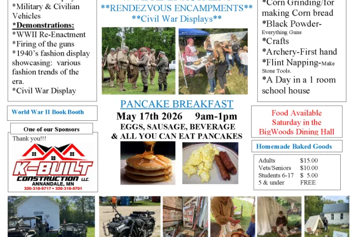 Also offer Day Camps at the park (churning butter, making biscuits, learning about the Daily chores of pioneer life. Registration is through Annandale Community Education at www.annandalece.com