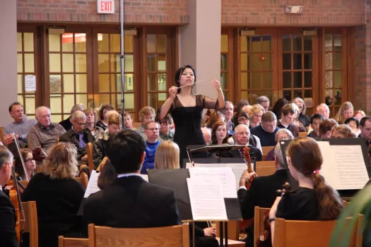 The Mississippi Valley Orchestra is a civic orchestra whose star is rising. Founded as a chamber group in 1976 by Edward Schlueter in West St. Paul/Mendota Heights, MVO is now a polished symphony orchestra that performs in venues throughout the Twin Cities. The amateur and professional musicians of MVO, along with artistic director Ho-Yin Kwok, prepare four invigorating concerts each year, performing a wide variety of classical music and partnering with soloists and groups from the Minnesota Orchestra, the University of Minnesota, and other local arts and educational organizations. Also, every spring MVO plays one movement of a piano concerto with the winner of the St. Paul Piano Teachers Association concerto competition—often the student’s first experience playing with an orchestra.