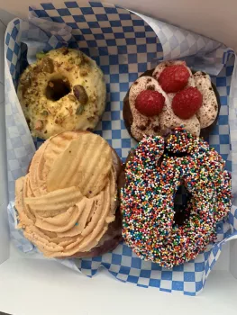 At Mojo Monkey Donuts, we’re all about quality. Fresh donuts from real recipes made by real people. We start our process every day around 7:00 p.m. and don’t stop until 1:00 or 2:00 p.m. the next day. We do our best to have many varieties available, but to our delight and our customers’ dismay, they sell out fast. It’s best to arrive early for the best selection. But if you’re not an early riser, don’t let that discourage you. Everything is good and everything is quality.