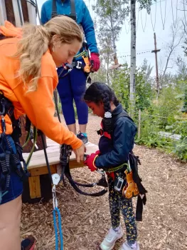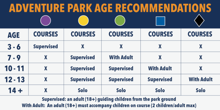 Kids ages 3 - 6 can play on the the Lil' Rascals Playground. It features similar obstacles to the high ropes course, but they are easier and low to the ground. It also has a fun sit-down zipline!