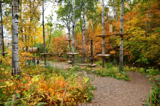 Climb and Zipline through the trees at the North Shore Adventure Park in Silver Bay, MN! Adults and kids 7 and up have a blast challenging themselves to the high ropes courses and ziplines. There are 6 treetop ropes courses and 10 ziplines, with 5 levels of difficulty. Start on an easy course and work your way up to the most difficult Black Storm. You are in charge - go at your own pace and complete as many courses as you like.