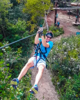 This high ropes course and zipline experience is an exhilarating, yet safe experience for all participants. We provide safety instructions and equipment. You will develop endurance, confidence, and challenge yourself to step out of your comfort zone during your time in the Park. Trained staff members monitor the Park and are there to assist if needed.