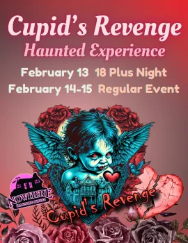 Step into the spine-chilling haunted house experience catering to thrill-seekers of all ages, offering different scare levels to match every visitor’s taste. Get ready for an unforgettable, haunting adventure! From seasonal haunted houses during the Halloween season to holiday themed haunted houses, like Cupid's Revenge, join us at Nowhere Entertainment for the thrills!
