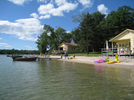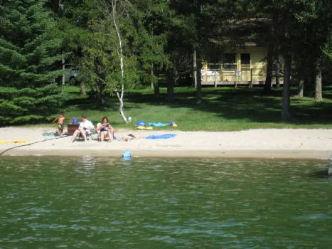 We are a quality family resort in the Park Rapids area, near Leech Lake, Walker, Nevis and Itasca State Park. Close to the Heartland Biking Trail and the Paul Bunyan State Forest. Situated on crystal clear, Lake Belle Taine with spacious grounds a beautiful beach. Take a look at Pine Beach Resort! Located on approximately 40 acres on crystal clear, pristine Lake Belle Taine, Pine Beach Resort is a quality vacation facility designed specifically for families. Our sixteen cottages are well spaced out over 1,800 feet of level lakeshore in the private surroundings of a groomed forest. A sugar sand beach extends the length of the resort. Facing west, it all receives the warm afternoon sun and offers beautiful sunset views. All roads on the resort are private for guest use only, so children can wander safely. We offer activities for all ages, as well as plenty of space for solitude. People are well spread out, and it's easy to find the seclusion of a walk in the woods, or your own spot on the beach to join in the activities.We have structured Pine Beach to serve Couples and Families who want a close to nature experience coupled with lots of easily available activities. Busy days, peaceful evenings and quiet nights.You can expect clean, modern cottages, each with a lakeside deck perfect for morning coffee. Included at no charge: children's activities, sauna, golf range, log fort, playhouse, rainbow play system, horseshoes, shuffleboard, tetherball, bicycles, canoes, paddleboats, sailboat, your own 14' boat and much more.Pine Beach is a family owned resort and a truly wonderful place. It is "THE RESORT" you can't find anymore. We extend an invitation to come, and enjoy the "Good Life" vacation that we have waiting for you. Your hosts, Lindsay, Sam, and Anne Bedford.