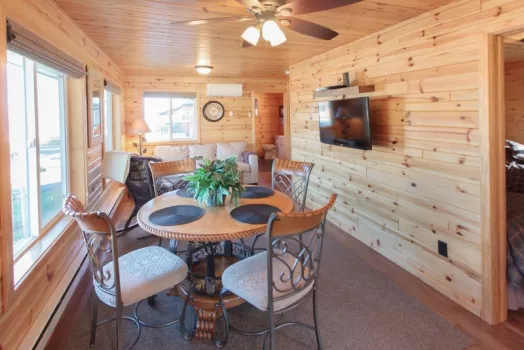 Immerse yourself in the rustic elegance of our five cabins at The Pines of Kabetogama Resort, each cabin offering a unique glimpse into the captivating wilderness of Minnesota's Northwoods. These cabins, meticulously designed, boast interiors adorned with locally sourced knotty pine and granite finishes, creating a seamless connection with the natural surroundings. Experience unparalleled comfort with our first-rate housekeeping services, luxurious linens, plush towels, and exclusive sundries that elevate your stay.