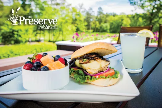 A comfortable outdoor patio allows you to enjoy the natural beauty of The Preserve Golf Course, or relax in a casual pub setting while enjoying lunch in the clubhouse. The elevated view has been called "The Best Golf Course View in Minnesota". Fantastic sandwiches, salads and brats for that quick bite on or off the course.
