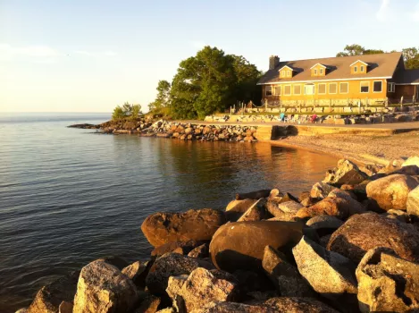 Enjoy casual lakeside dining at Arnesen's Rock Harbor Lodge.