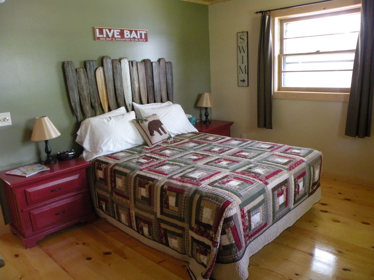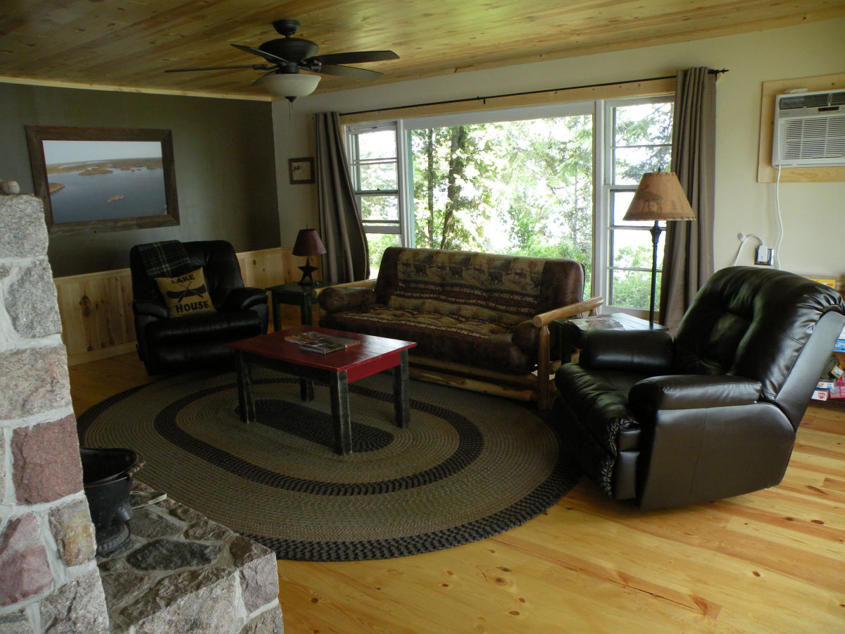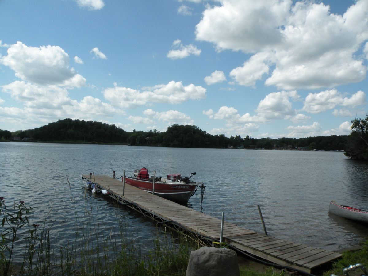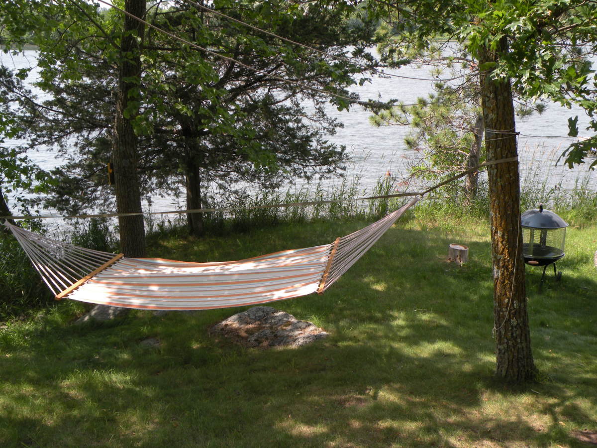 Have you ever wondered what it would be like to stay on an island? Well wonder no longer and come stay at our beautiful cabin on Sams Island, a one acre island in the middle of Fish Trap Lake! The 360 degree view allows you to fully enjoy nature, see both sunrises and sunsets, and have peace and quiet you normally just dream of. In this 2-bedroom cabin, a beautiful, huge stone fireplace separates the living room from the kitchen/dining area. There is one full bath, a complete kitchen, satellite TV and DVD player, free wifi, and air conditioning. (Visit our website, www.samsislandcabin.com, to view pictures of the cabin.) During your stay, you can relax in the hammock by the lake or enjoy fishing, canoeing, kayaking, paddleboarding, swimming, reading, exploring, loon watching, geocaching, biking or hiking, all on or near the island. Campfire Bay Resort is located across the water from the island and has daily organized activites from tie-dying to woodworking that you can partake in. Give us a call or email if you'd like to reserve this cabin for your summer vacation!