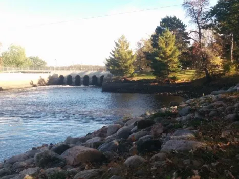 The original wood dam was built in 1895 and included a lock that allowed steam boats to travel through to the Mississippi River. The original wood structure was replaced with concrete in 1912 and the lock was last cycled in 1956. Today, the lock house has been converted into a small museum containing historical artifacts of the area.