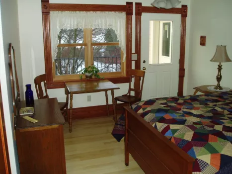 "The quintessential B&B" - Minnesota Monthly. 1892 Victorian home has original woodwork and period furnishings. Queen beds. Unparalleled view from tower. One-of-a-kind full breakfast with organic and regionally-grown produce, free-range eggs and meats, and shade grown fair trade coffee and natural teas. Natural soaps, cleaning products. Natural lawn care. Line-dried linens and towels as weather permits.