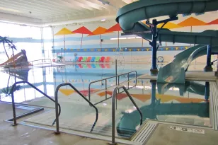 State of the art recreation center including serpentine 102 foot waterslide, lap swimming, hot tub,…