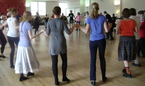 Recreational International Folk Dancing, Contra, Swing, Scandinavian, and English Country dances, beginning instruction, workshops, and often live music on weekends.