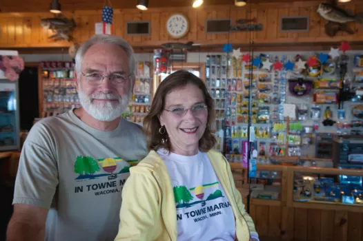 We are a family-owned and operated marina since 1981, on the south shore of Lake Waconia. During the summer months, we offer boat slips and mooring buoys. We rent fishing boats with motors and pontoons. We have a deep, double-wide pay boat access. We also sell marine-grade 91-octane gas. During the winter, we rent fish houses and plow lake roads, offering access to the lake for a minimal fee. During both summer and winter, we sell bait, tackle, licenses, snacks, sandwiches and beverages.