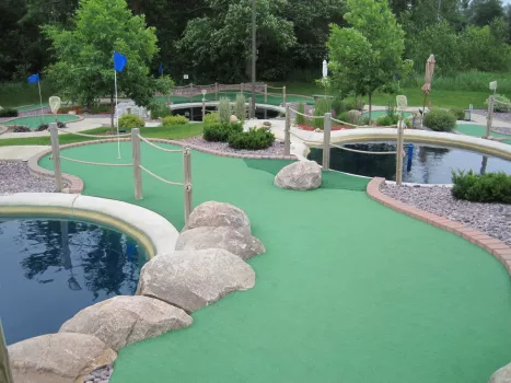 Exciting 18 hole miniature golf with a large waterfall, meandering streams and fountain ponds all set among beautiful landscaped grounds. The Fun Park includes a batting cage, water wars and a shooting gallery.